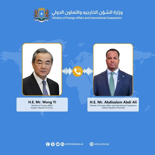 أجرى وزير الخارجية والتعاون الدولي في جمهورية الصومال الفيدرالية، عبد السلام عبدي علي، اتصالًا هاتفيًا مع نظيره الصيني وانغ يي، عضو المكتب السياسي للجنة المركزية للحزب الشيوعي الصيني ووزير خارجية جمهورية الصين الشعبية، جدد خلاله الجانبان تأكيدهما على متانة الشراكة الاستراتيجية بين البلدين، وتمسكهما بوحدة السيادة ورفض أي محاولات انفصالية.