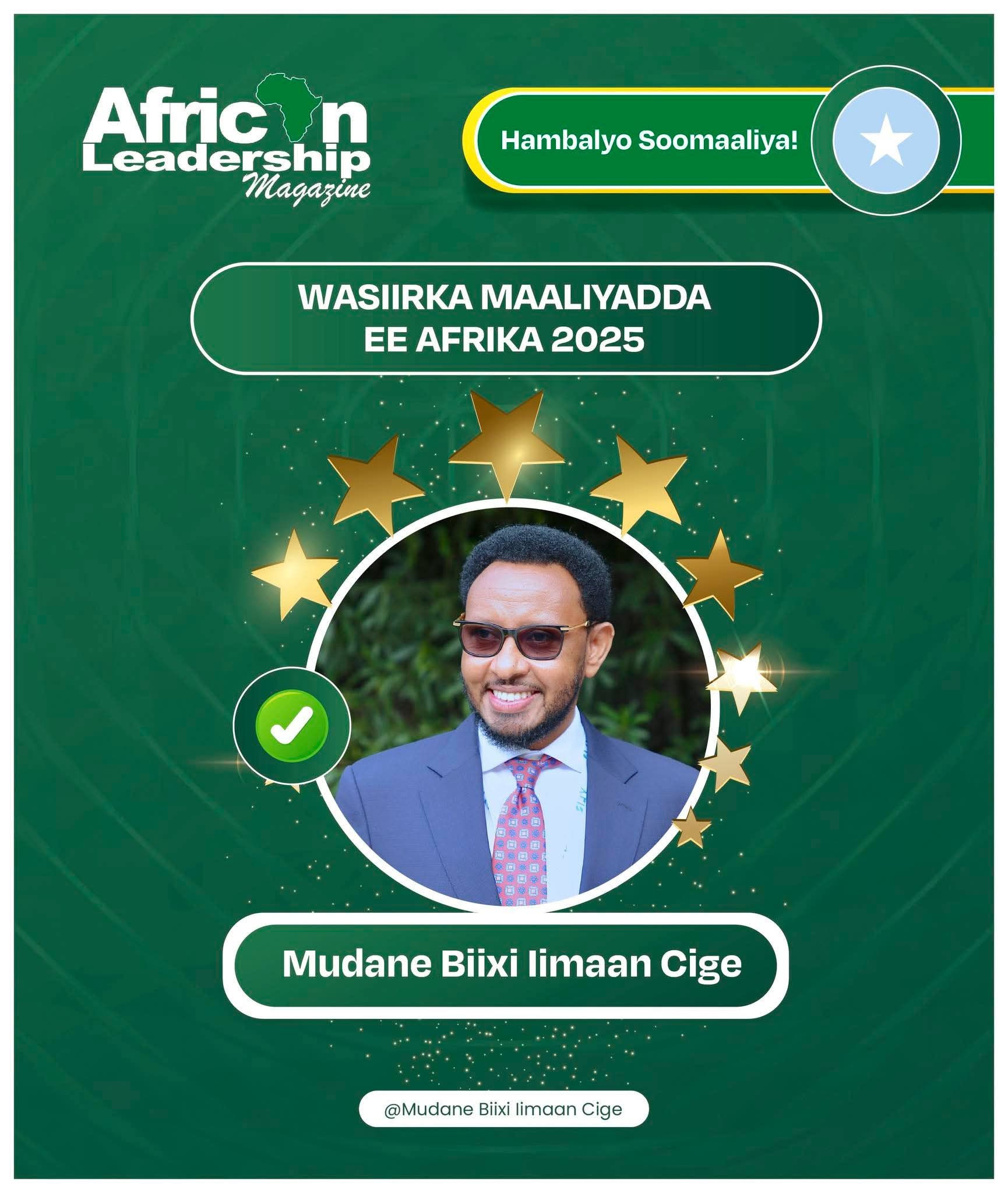 فاز وزير المالية الصومالي، بيحي إيمان عغي، بجائزة أفضل وزير مالية في إفريقيا لعام 2025، في تصويت إلكتروني نظمته مجلة African Leadership Magazine، متفوقًا على نظرائه من السنغال، جنوب السودان، مصر، وزيمبابوي.