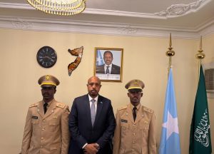 الرياض/ مقديشو برس – شارك سفير جمهورية الصومال الفيدرالية لدى المملكة العربية السعودية، السيد محمد الأمين شيخ عثمان، في حفل تخرج ضابطين صوماليين من كلية الملك عبدالعزيز الحربية، هما الملازم أول عبدالرحمن أحمد يوسف والملازم أول عباس علي محمد، وذلك بحضور المستشار الأول عبدالقادر محمد عثمان، إلى جانب الملحق العسكري العميد الركن بلي إبراهيم آدم.