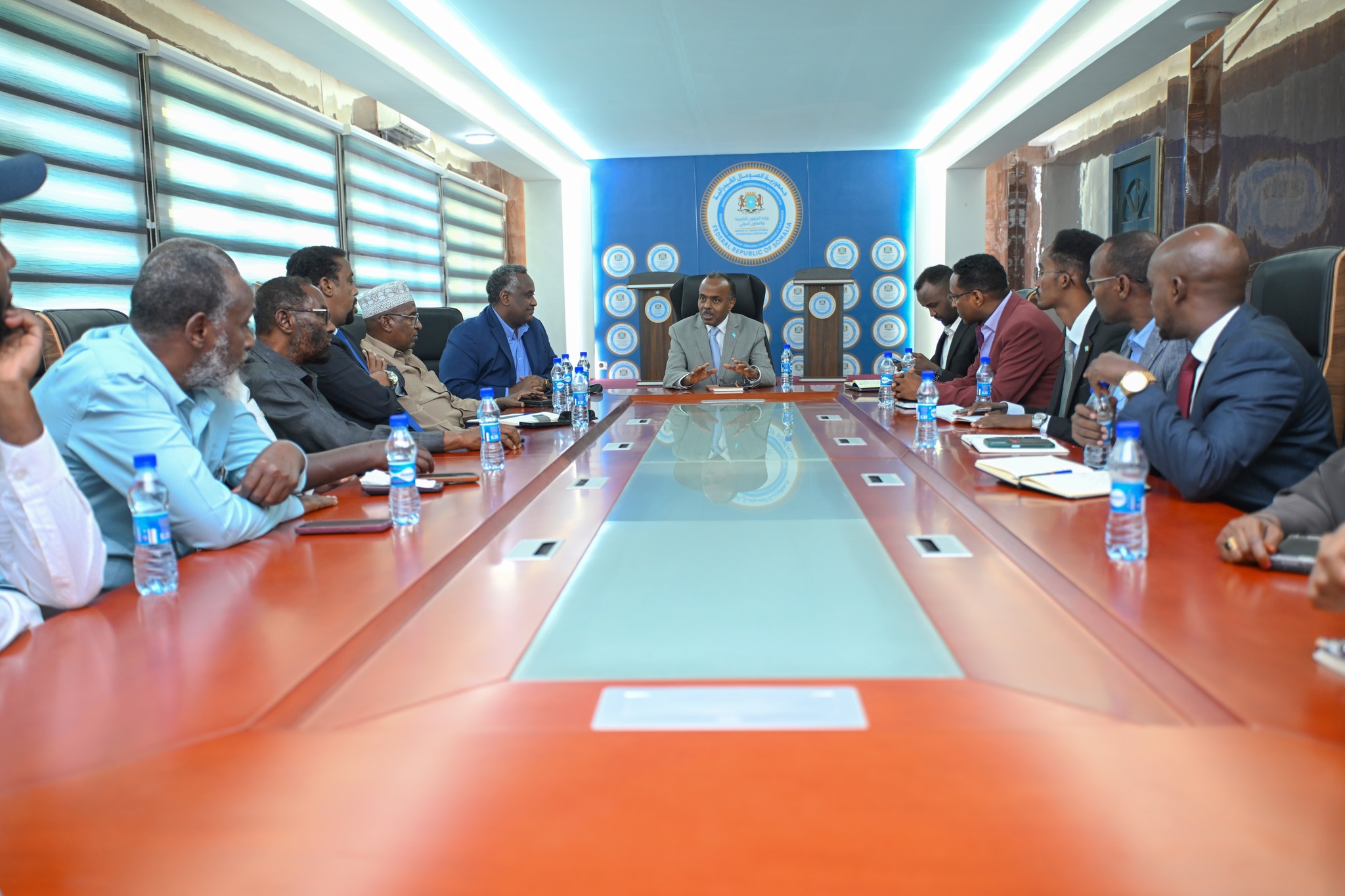 مقديشو برس –عقد وزير الدولة للشؤون الخارجية في جمهورية الصومال الفيدرالية، السيد علي عمر، اليوم اجتماعًا مع قيادات القطاع التجاري الصومالي، شمل ممثلين عن البنوك، وغرفة التجارة الصومالية، وجمعية الاتصالات، بالإضافة إلى سيدات الأعمال.