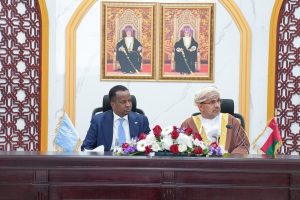 مسقط/ مقديشو برس – التقى معالي وزير الخارجية والتعاون الدولي بجمهورية الصومال الفيدرالية، السيد عبد السلام علي، مع معالي وزير الزراعة والثروة السمكية والموارد المائية في سلطنة عُمان، الدكتور سعود بن حمود بن أحمد الحبسي، لبحث سبل تعزيز التعاون في مجالات تصدير الماشية والثروة السمكية والزراعة.