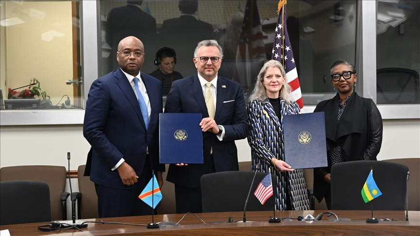 وقال البيان: “في خطوة مهمة، قام ممثلون من جمهورية الكونغو الديمقراطية وجمهورية رواندا، اليوم، بالتوقيع بالأحرف الأولى على النص الكامل لإطار التكامل الاقتصادي الإقليمي، الذي يشرف عليه كل من أليسون هوكر وكيل وزارة الخارجية للشؤون السياسية الأمريكية، ومسعد بولس المبعوث الأمريكي لشؤون الدول الإفريقية”.